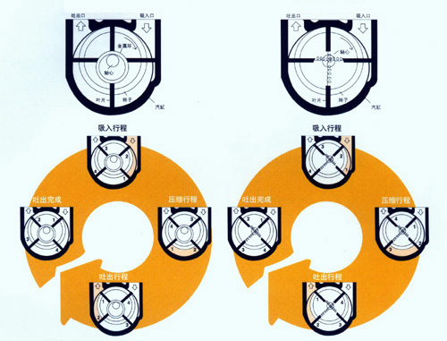 風機靠汽缸內偏置的轉子偏心運轉,并使轉子槽中的葉片之間的容積變化,將空氣吸入、壓縮、吐出,在運轉中利用風機的壓力差自動將潤滑油送到滴油嘴,滴入汽缸內以減少摩擦及噪聲,同時可減少汽缸內氣體的回流。 |